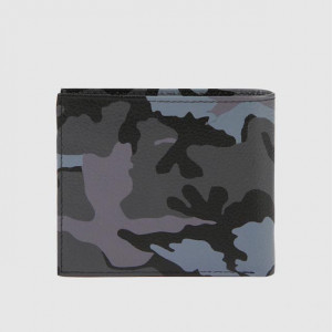 Men Black & Grey Camouflage Printed Two Fold Leather Wallet