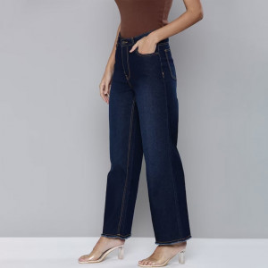 Women Blue Straight Fit High-Rise Clean Look Stretchable Jeans
