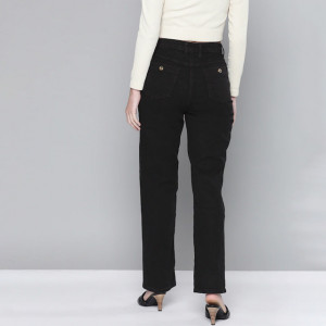Women Grey Straight Fit Clean Look High-Rise Jeans with Side Slit and A Chain